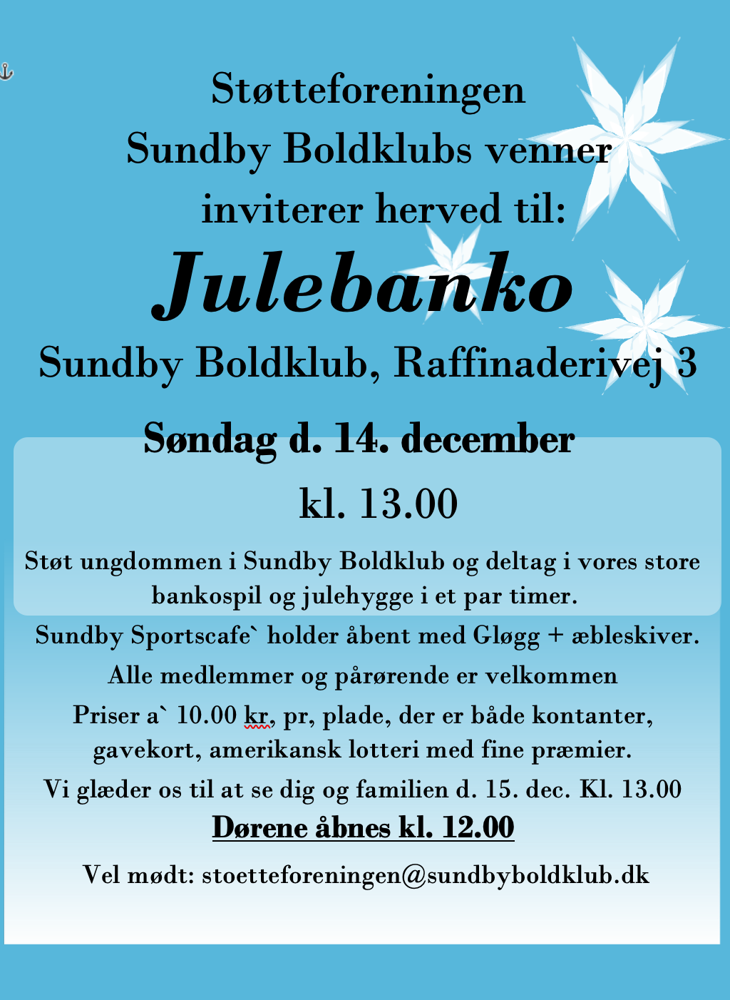 Sundby Boldklubs venner inviterer til julebanko 14. december kl. 13:00